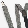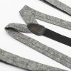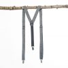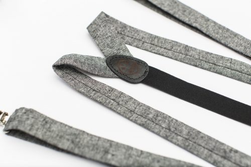 Handmade black linen clip-on suspenders with 1” slim cut straps for a sleek and stylish modern look. Suspenders attach to your pants with three nickel plated clip-on clamps. There are plastic inserts inside the metal clamps for damage-free grip on your pants. Quick and easy! 😉 Back features a fun and fancy die cut, laser engraved leather piece and elastic for moveability so you can shake a tail feather. This skinny strapped style looks great on a smaller frame.